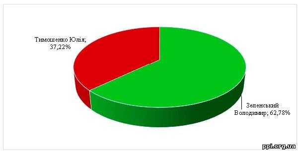 «Якщо в другий тур виборів Президента України проходять Тимошенко Юлія та Зеленський Володимир, якого кандидата ви б підтримали?»