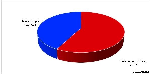 «Якщо в другий тур виборів Президента України проходять Тимошенко Юлія та Бойко Юрій, якого кандидата ви б підтримали?»