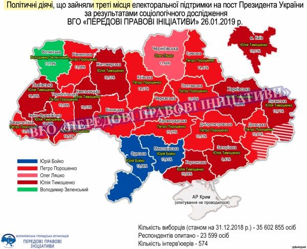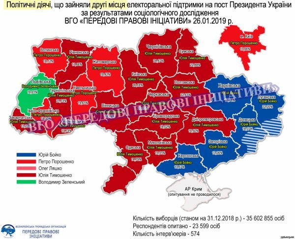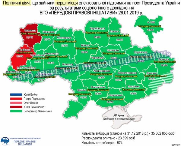 Із врахуванням того, що близько 29% виборців не визначилися з вибором, їх голоси можуть суттєво вплинути на корегування лідерів серед кандидатів на посаду президента, а відповідно на шанси виходу до другого туру.Опитування проводилося всеукраїнською громадською організацією «ПЕРЕДОВІ ПРАВОВІ ІНІЦІАТИВИ» 26 січня 2019 року в 24-х областях України та м. Київ, за виключенням АР Крим і тимчасово непідконтрольних українській владі територіях Донецької та Луганської областей.