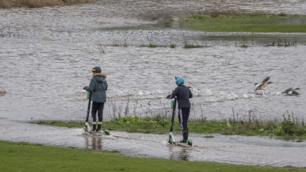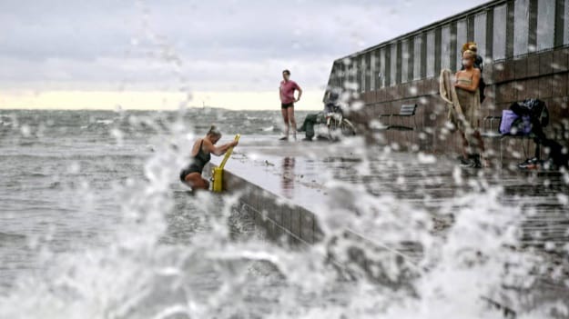Деякі люди, попри шторм, все одно прийшли відпочивати і купатися.Окремі вулиці підтоплені також у Порвоо, місті на схід від столиці; їх закрили для руху транспорту.