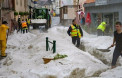 Жителям французького міста Пломб'єр-ле-Бен довелося снігоочисниками та лопатами розчищати вулиці міста після того, як їх вкрив товстий шар граду.