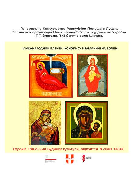 Генеральне Консульство РП в ЛуцькуВолинська Організація Національної спілки художників України запрошують на відкриття виставки ікон,написаних під час IV міжнародного пленеру іконопису на Волині у 2014 році.