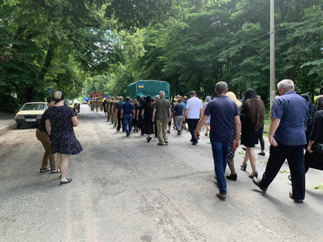 Кортеж із загиблим воїном зустріли живим коридором шани жителі громади, покладаючи квіти перед автомобілем з домовиною Героя. Прибувши останній раз на подвір’я до рідного дому, собором місцевих священнослужителів було відслужено чин заупокійної літії. Потому траурна процесія попрямувала до майдану Соборності, де відслужили панахиду.