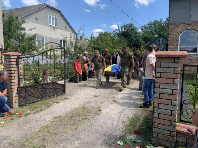 Поховали мужнього Героя на місцевому кладовищі, у мить прощання звучав Державний Гімн України та триразові залпи почесної варти.