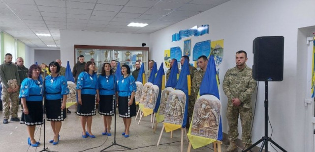 На початку заходу учні ліцею та військові винесли барельєфи, а священнослужителі громади відслужили поминальну молитву та провели обряд освячення ікон.
