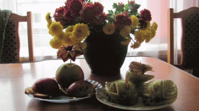 За допомогою простого ножа або набору спеціальних інструментів можна створити цікаву форму або перетворити в оригінальні декоративні елементи ті чи інші фрукти або овочі.