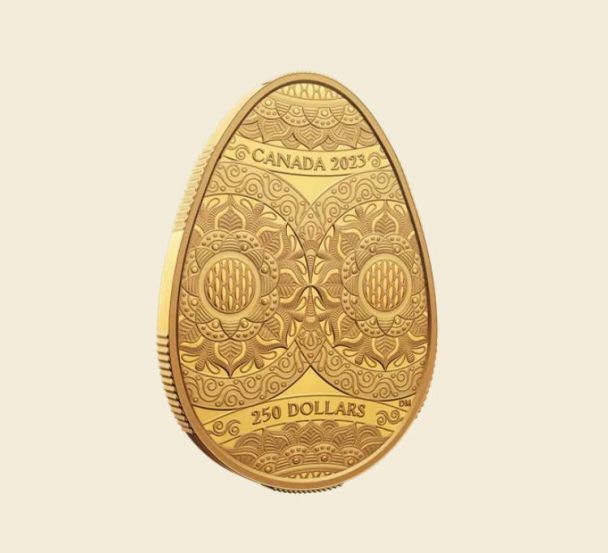Її виготовили з 58,5 грама чистого золота. Номінал дрівнює 250 канадським доларам, але викупна ціна сягає 7 тисяч доларів. Загалом викарбували 275 «монет-писанок».Читати ще: Дві українські монети визнали одними з найкращих у світі за 2022 рік