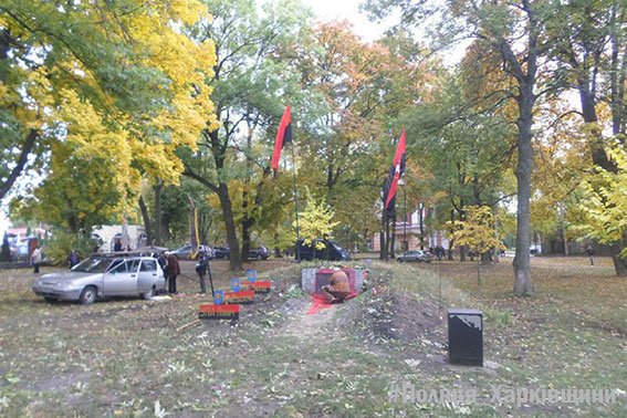 Вночі невідомі облили пам’ятник воїнам УПА червоною фарбою в парку «Молодіжному» у Харкові. Місцева поліція встановлює обставини пошкодження пам’ятника.