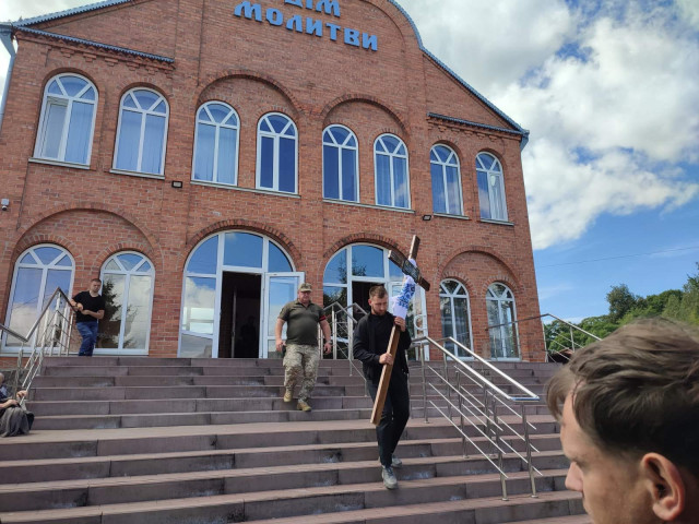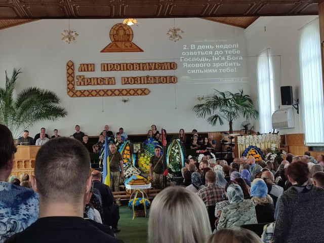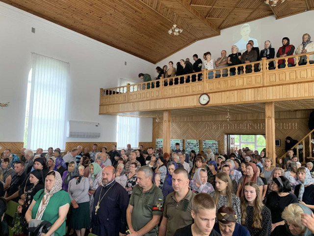 Похоронне богослужіння розпочалося зустріччю воїна у Церкві ЄХБ «Віфлеєм» на якому зібралося духовенство, представники влади та жителі громади.
