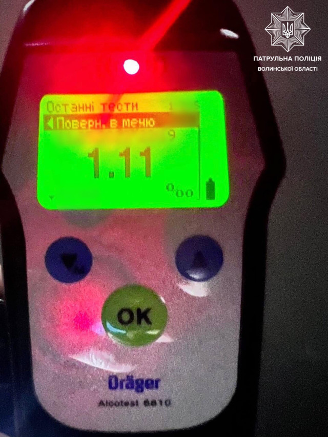 Під час спілкування з керманичем поліцейські помітили, що чоловік нервує та має ознаки сп‘яніння. Drager показав результат – 1,11 проміле, повідомили у патрульній поліції області.