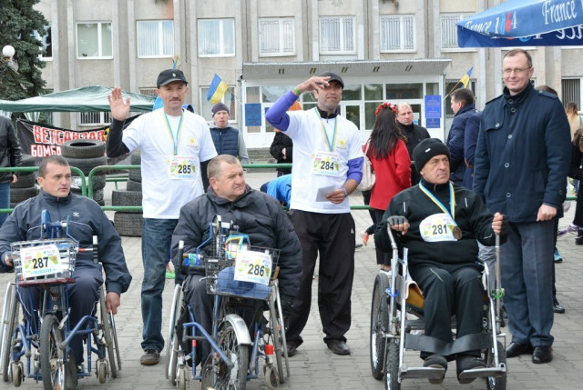 Випробували свої сили у забігу й люди з обмеженим можливостями. Пересуваючись за допомогою інвалідних візків та палиць, вони демонстрували неймовірну силу духу та цілеспрямованість.