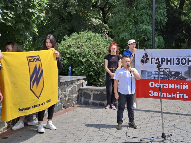 Учасники акції тримали стяги «Азову» та плакати із написами: «Поверніть Героїв», «Волю захисникам Маріуполя!», «Незламні Герої маріупольського гарнізону вибороли час для всієї країни», «Поверніть наших рідних з полону» тощо.Рідні полонених закликали не забувати, що понад 700 воїнів полку «Азов» досі залишаються у російському полоні, нагадувати цивілізованому світу, що вони перебувають у небезпеці, а їх сім’ї – у невідомості.