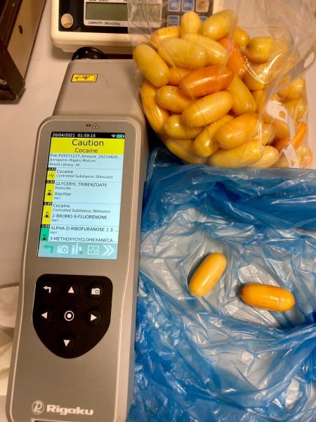 «Всередині виявлених капсул, вилучення яких відбувалось медикаментозним шляхом протягом майже доби (19 годин), знаходилася порошкоподібна речовина білого кольору загальною вагою брутто 1070,29 г», – йдеться в повідомленні.