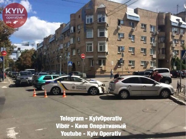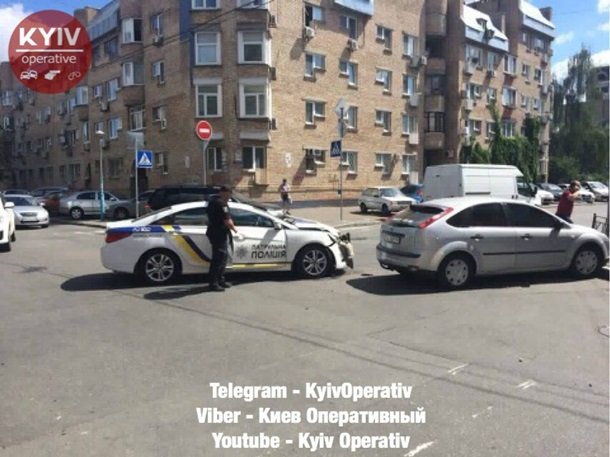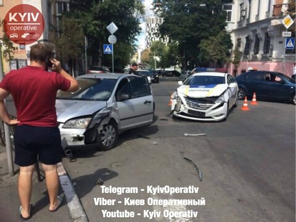 Зокрема, зазначено, що близько 12:10 на перехресті вулиць Хорива і Почайнинської автомобіль Ford зіткнувся з поліцейським Hyundai.