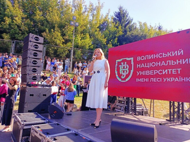 Заступниця міського голови Ірина Чебелюк привітала студентів та викладачів з початком нового навчального року.«Сьогодні першокурсники офіційно скалили присягу – належно навчатися, жити і працювати задля нашої країни. Ми вдячні за те, що ви обираєте українську освіту, цей виш та наш рідний Луцьк. Наша мрія – аби ви здобували освіту без тривог та під мирним небом! Щоб щодня ви відчували спокій та гармонію. Тому віримо, надіємось та молимося за кожного воїна, який захищає нас. Нехай здобуті знання будуть основою для подальшого кар'єрного зростання. Навчайтеся, розвивайтеся, спілкуйтеся та рухайтеся вперед», – зазначила вона.Також першокурсників привітали ректор ВНУ імені Лесі Українки Анатолій Цьось та народна депутатка України Ірина Констанкевич.