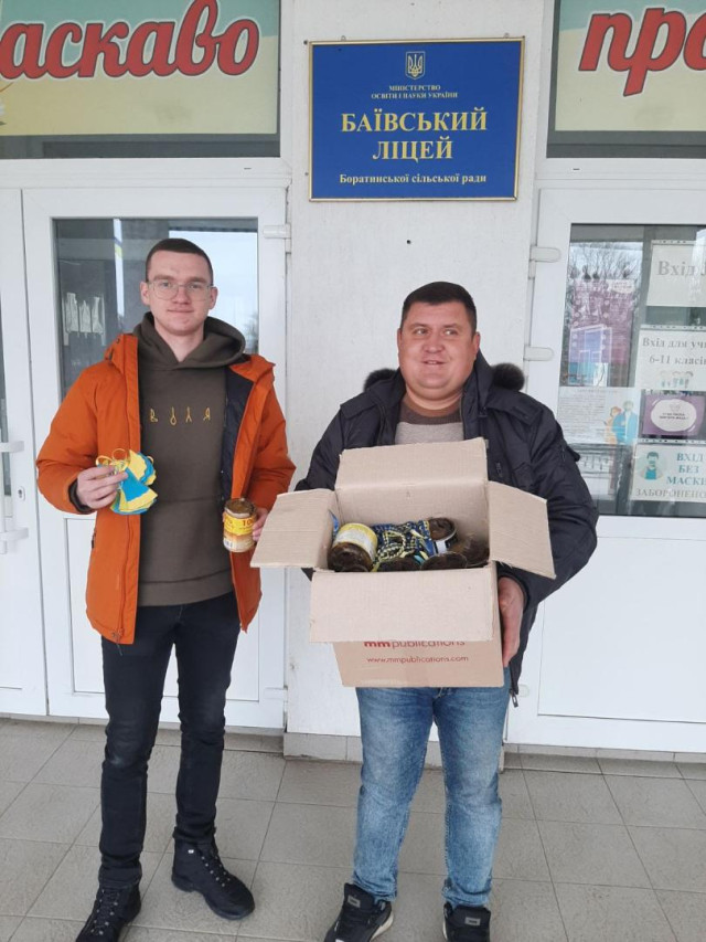 Школярі разом з педагогом Андрієм Никоньчуком майструють вироби на уроках трудового навчання і передають місцевим волонтерам, аби ті доставили на передову.