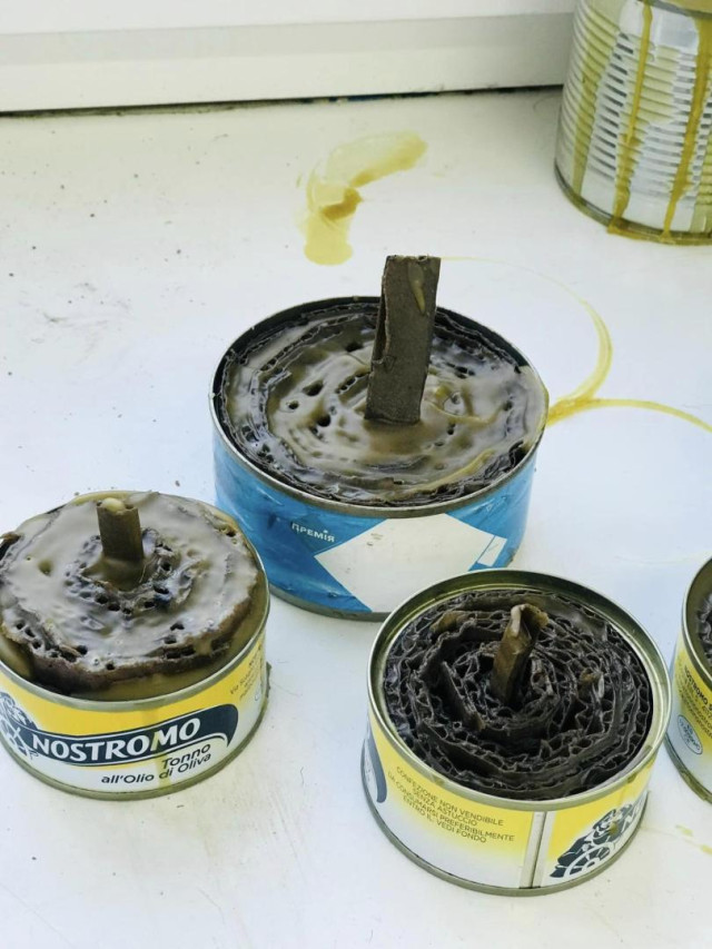 «З використаних бляшаних банок, картону, воску ми виготовляємо окопні свічки для наших захисників, – пояснюють школярі. – Ці свічки є джерелом не тільки світла, а ще й тепла. Вони не бояться вологи та вітру, полум’я може сягати до 30 см, а процес горіння триває від 1,5 до 5 годин. Такими свічками легко можна освітити підвал чи окоп», – йдеться у повідомленні.