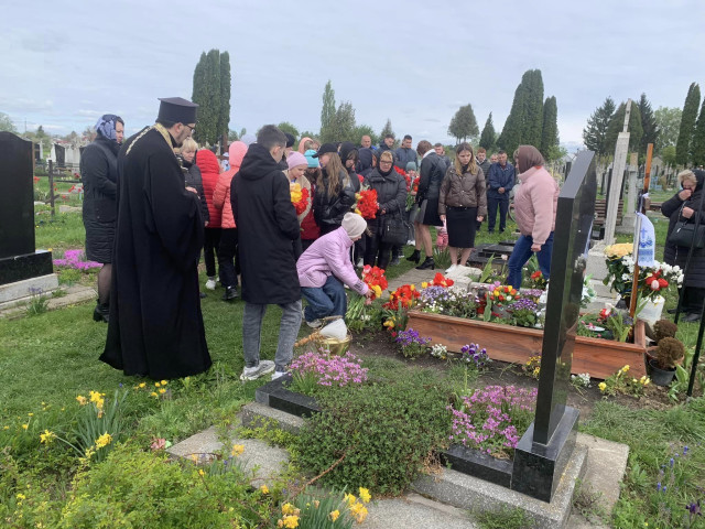 Поховали мужнього Героя Романа Романюка на місцевому кладовищі, у мить прощання звучав Державний Гімн України та триразові залпи почесної варти.