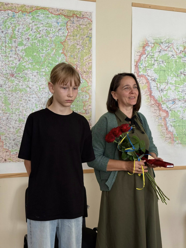 Любомльський міський голова Роман Ющук та начальник першого відділу Ковельського РТЦК та СП Олександр Нодянош вручили орден «За мужність» ІІІ ступеня дружині полеглого захисника України Гірея Ігоря Петровича.