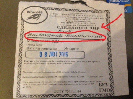 Фото з етикеткою такого хліба нещодавно у мережі ВКонтактє розмістила одна з ЛНР-рівських спільнот.