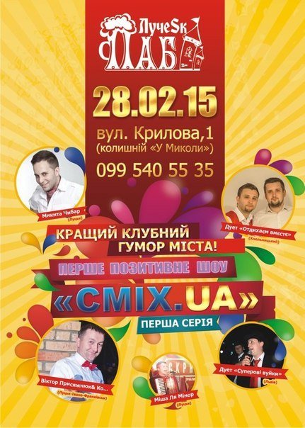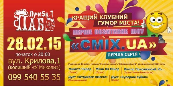 "CMIX.UA" є правонаступником успішного комедійного шоу під назвою «Встань і розсміши», яке відбувалось в 2011 році в нашому місті. Тоді, серед гостей були запрошені відомі люди Волині, резидентів публіка знала в обличчя, а гумор був доступним для усіх (хоча, не завжди з цензурою).