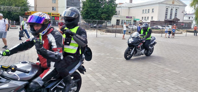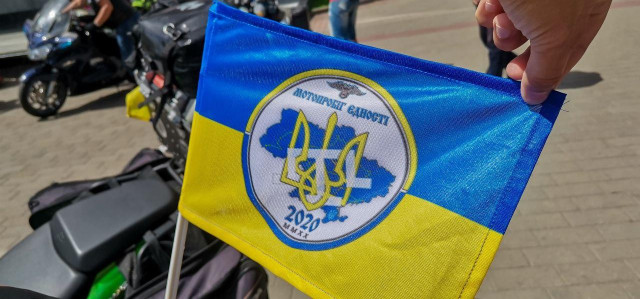 Упродовж години учасники мотопробігу роздавали браслети на руку із надписом «Мотопробіг єдності 2020» і наліпки, о 14:00 рушили далі.