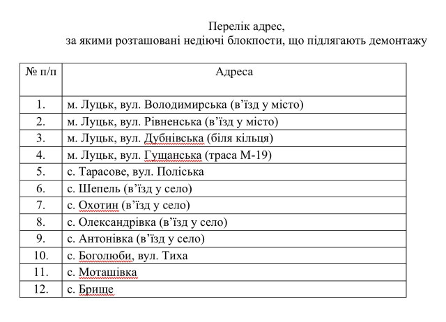 12 закинутих блокпостів, розташованих у населених пунктах Луцької громади, демонтують. Про це стало відомо 18 грудня на виконкомі Луцької міської ради.