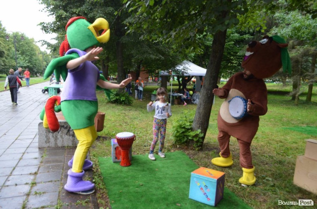 Попри похмуру та подекуди дощову погоду, у центральному парку дуже людно – дітлахи у супроводі батьків навперебій будували стіну, декорували пряники та навіть навчалися основ арт-терапії, інформує ВолиньPost.
