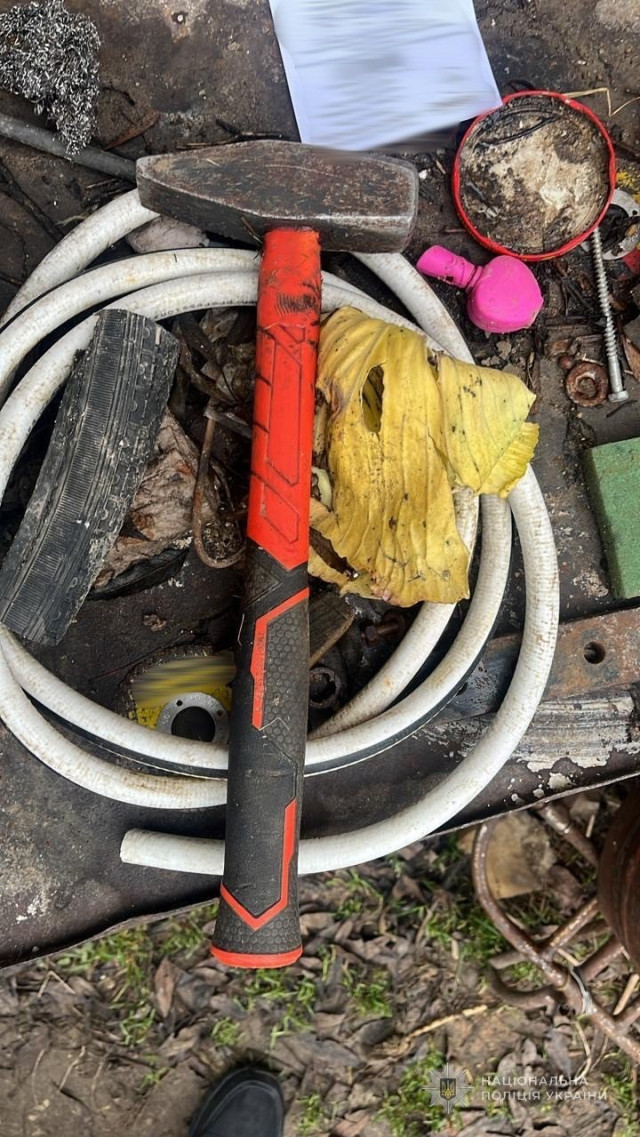 На місці події слідчо-оперативна група виявила знаряддя злочину – молоток та інші речові докази.