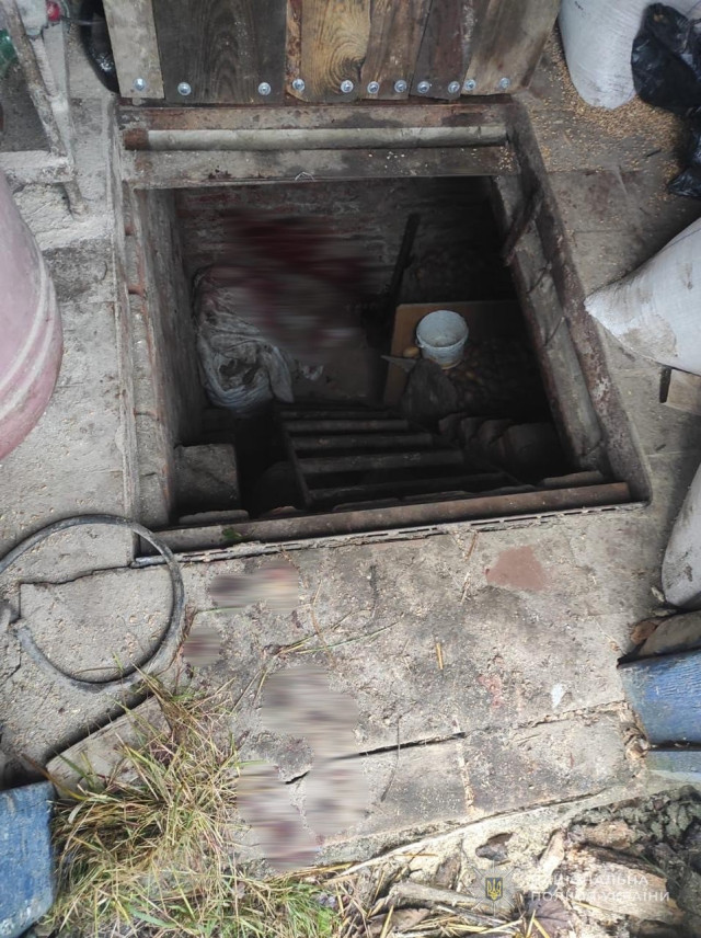 Зловмисник закрив тіло жертви в погребі кришкою, а сліди крові намагався замаскувати, присипавши її землею й залишками листя.