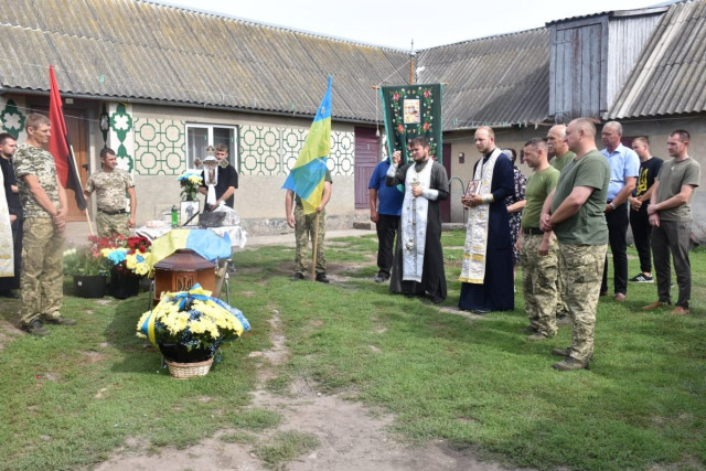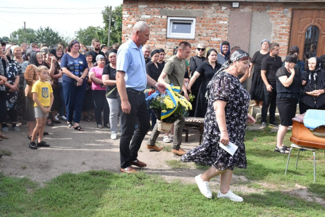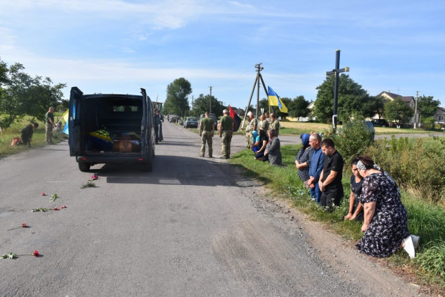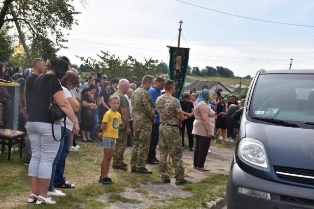 Полеглого бійця зустріли живим коридором. Чимало мешканців громади прийшли віддати останню шану військовому, серед них – рідня, друзі, однокласники, представники влади, члени місцевого добровольчого формування та небайдужі жителі.
