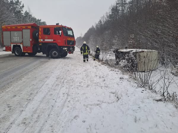 Водій вантажного автомобіля Volkswagen у зв’язку із погіршенням погодних умов не впорався з кермуванням та злетів у кювет.