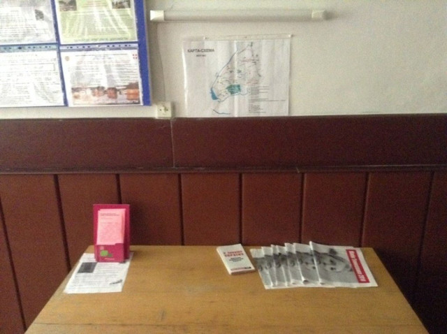 Цього разу в коридорі поблизу приймальної начальника луцького ЖКП розташували агітаційні матеріали (буклети та газети) кандидата на пост Президента України Юлії Тимошенко.