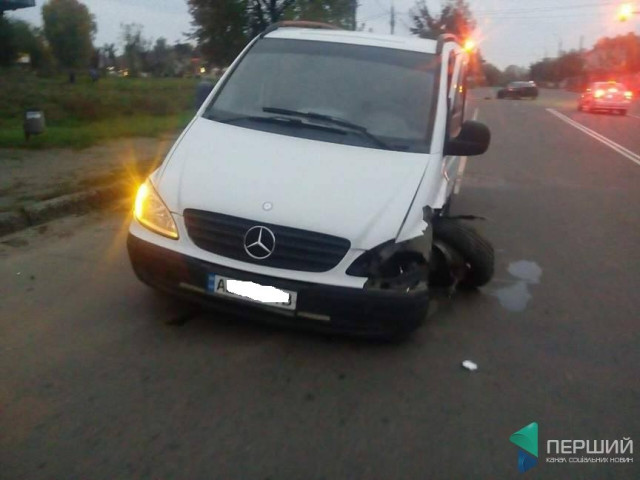 У автомобіля BMW розтрощене ліве крило. У Mercedes відлетіло ліве переднє колесо.