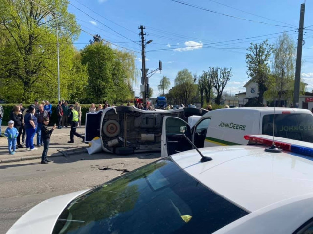 Так, близько 16 години напроти ТЦ «Імідж» зіткнулися два авто - Volkswagen Caddy та Renault Espace. Одна з автівок від удару перекинулась на бік.
