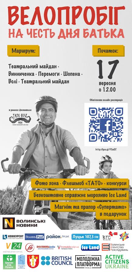 Вперше в Луцьку з нагоди Всеукраїнського Дня Батька 18 вересня відбудеться фестиваль батьківства «ТатоФест». У рамках фестивалю вулицями міста 17 вересня організують велопробіг.