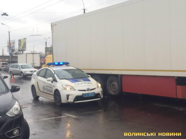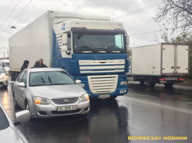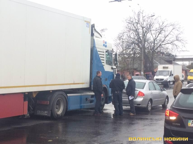 У Луцьку біля ринку вантажівка в’їхала у легковик. Фото