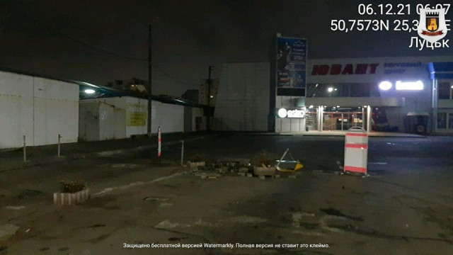 6 грудня у Луцьку муніципали демонтували тимчасову споруду та шлагбауми поблизу торгового центру «Ювант».