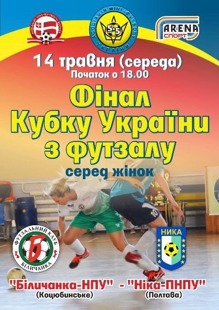 Так, у середу 14 травня о 18.00 год в СК «Арена Спорт», що на Карбишева,1, в Луцьку, пролунає свисток про початок фінального матчу Кубку України серед жінок. В головному кубковому поєдинку сезону зіграють лідери вітчизняного футзалу «Біличанка-НПУ» з Коцюбинського та полтавський клуб «Ніка-ПНПУ».