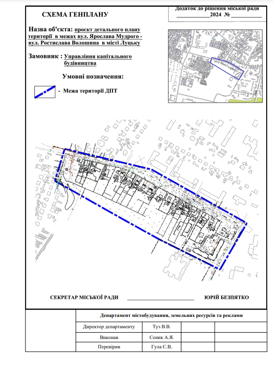 Тож депутати доручили управлінню капітального будівництва міської ради забезпечити розроблення проєкту детального плану території в межах вулиць Ярослава Мудрого та Ростислава Волошина у Луцьку.