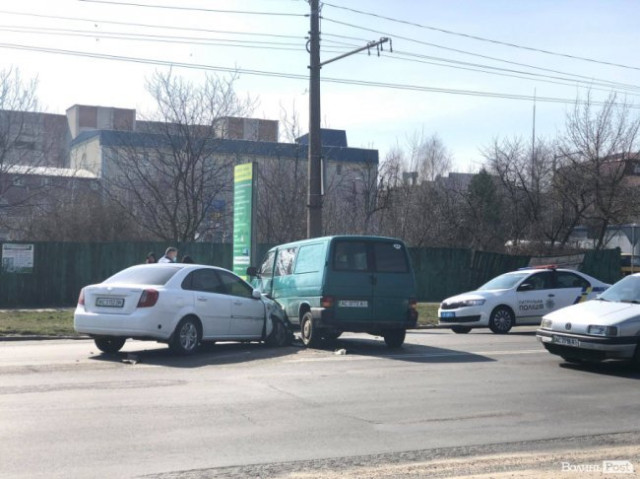 У Луцьку на вулиці Рівненській перед заправкою «AND» сталася аварія за участю буса Volkswagen і легковика Chevrolet.