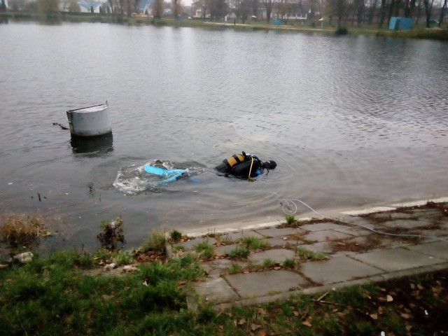 Луцькі дайвери виловлювали з дна Теремнівського ставка автомобіль.