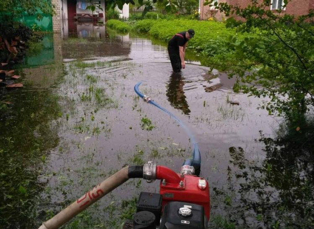 Співробітники 10-ої Державної пожежно-рятувальної частини м.Любомль за допомогою мотопомпи відкачали 30 кубічних метрів води з підтопленого приватного обійстя на вулиці Євгена Коновальця у райцентрі.