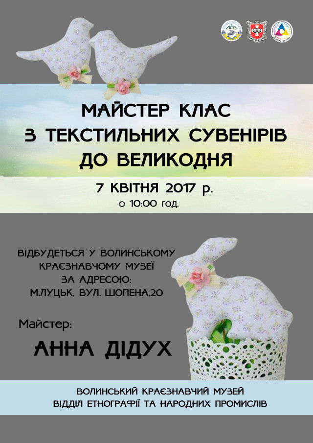 Майстер-клас з текстильних сувенірів до Великодня відбудеться 7 квітня у Луцьку. Початок - о 10.00.