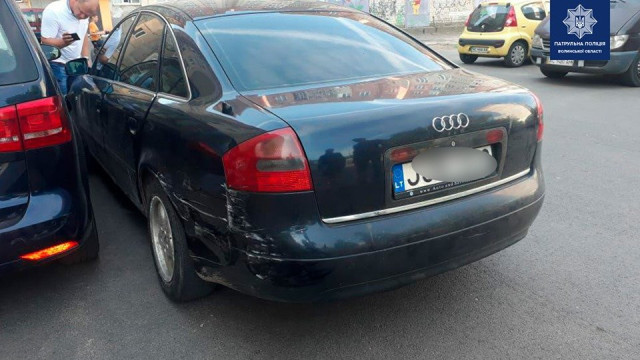 Прибувши на місце події інспектори виявили транспортний засіб AUDI A6, водій якого під час руху назад вчинив наїзд на п’ять припаркованих автомобілів.