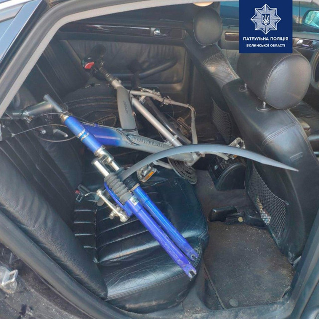 У водія було виявлено ознаки алкогольного сп’яніння, також при поверхневій перевірці автомобіля поліцейські виявили речі (велосипед, акумулятори та автомагнітоли) походження яких громадянин пояснити не зміг.
