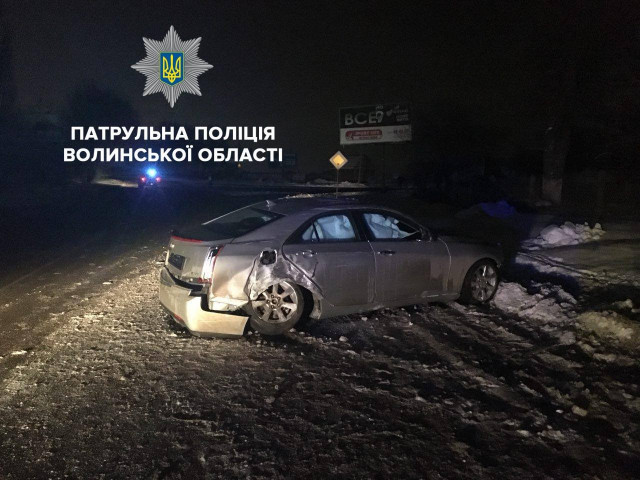 Тут водій Cadillac не вибрав безпечної швидкості, не впорався з керуванням та здійснив наїзд на електроопору і дорожній знак, повідомили у патрульній поліції Волині.