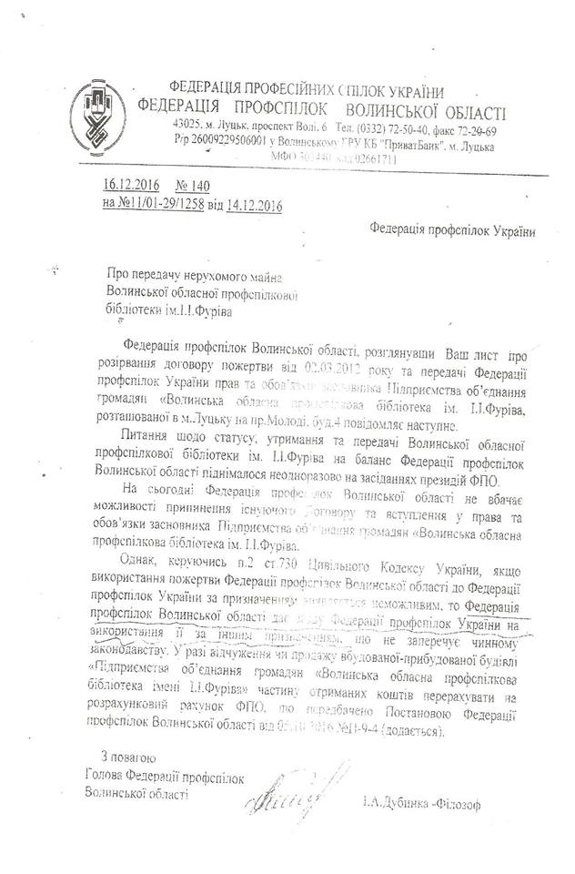 Тепер же профспілки вирішили позбутися бібліотеки, а приміщення пустити з молотка. Колектив бібліотеки не погоджується з таким рішенням.
