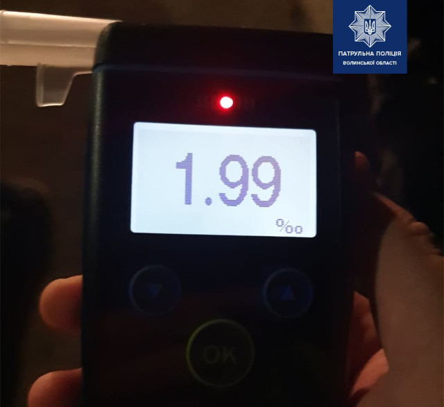 Кермувальник пройшов огляд на визначення стану алкогольного сп’яніння на місці події. Результат 1,99 проміле, що майже в 10 разів перевищує допустиму норму.