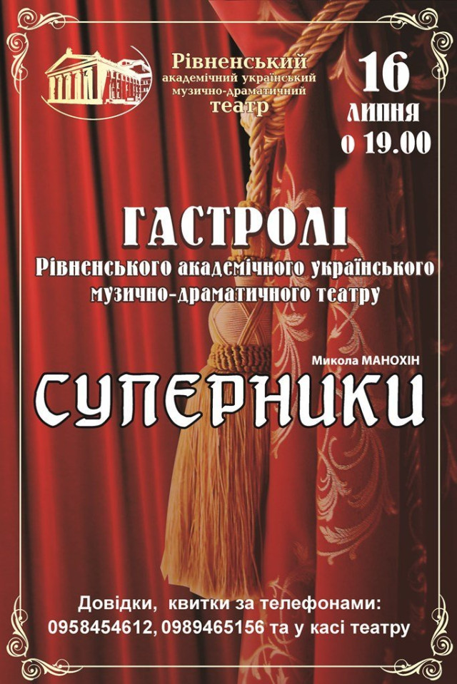 Вистава «Суперники», багаторазовий переможець українських та міжнародних фестивалів, у Рівненському облмуздрамтеатрі відбувається з постійними аншлагами.